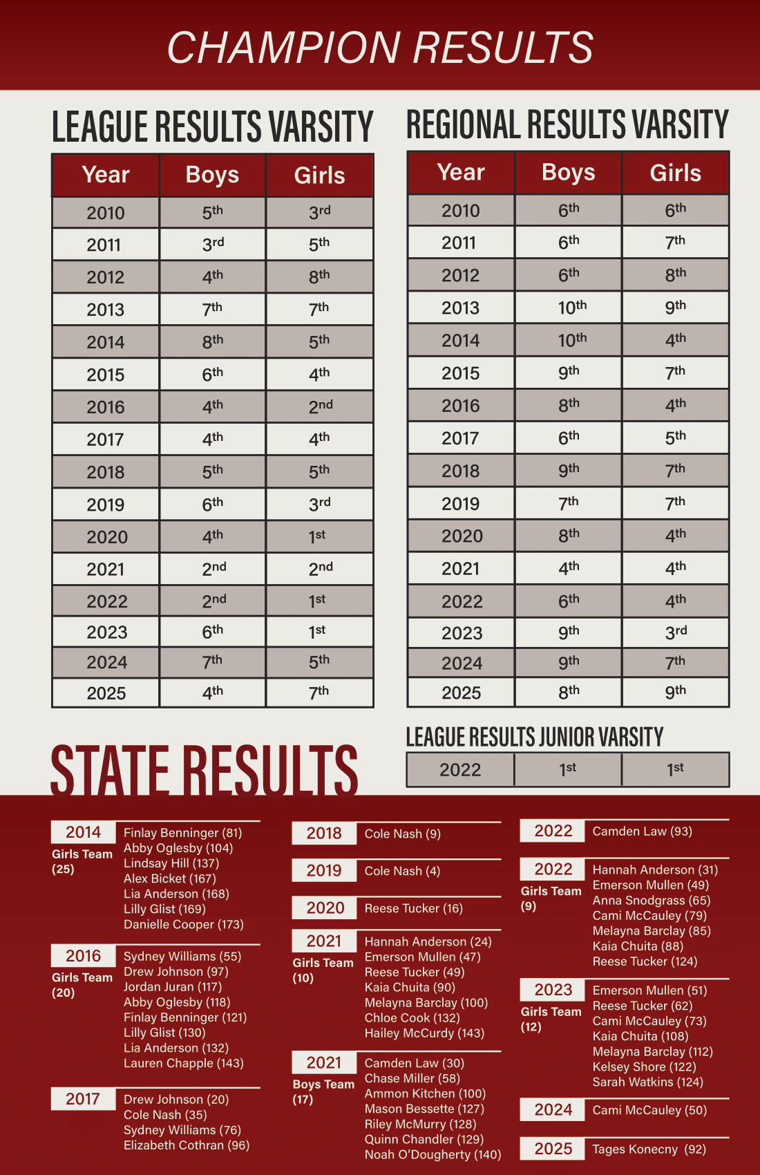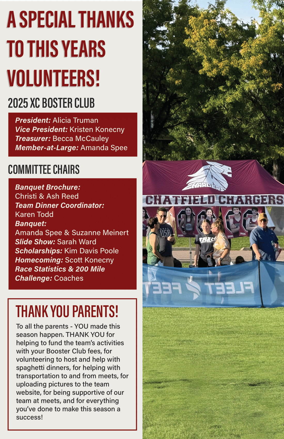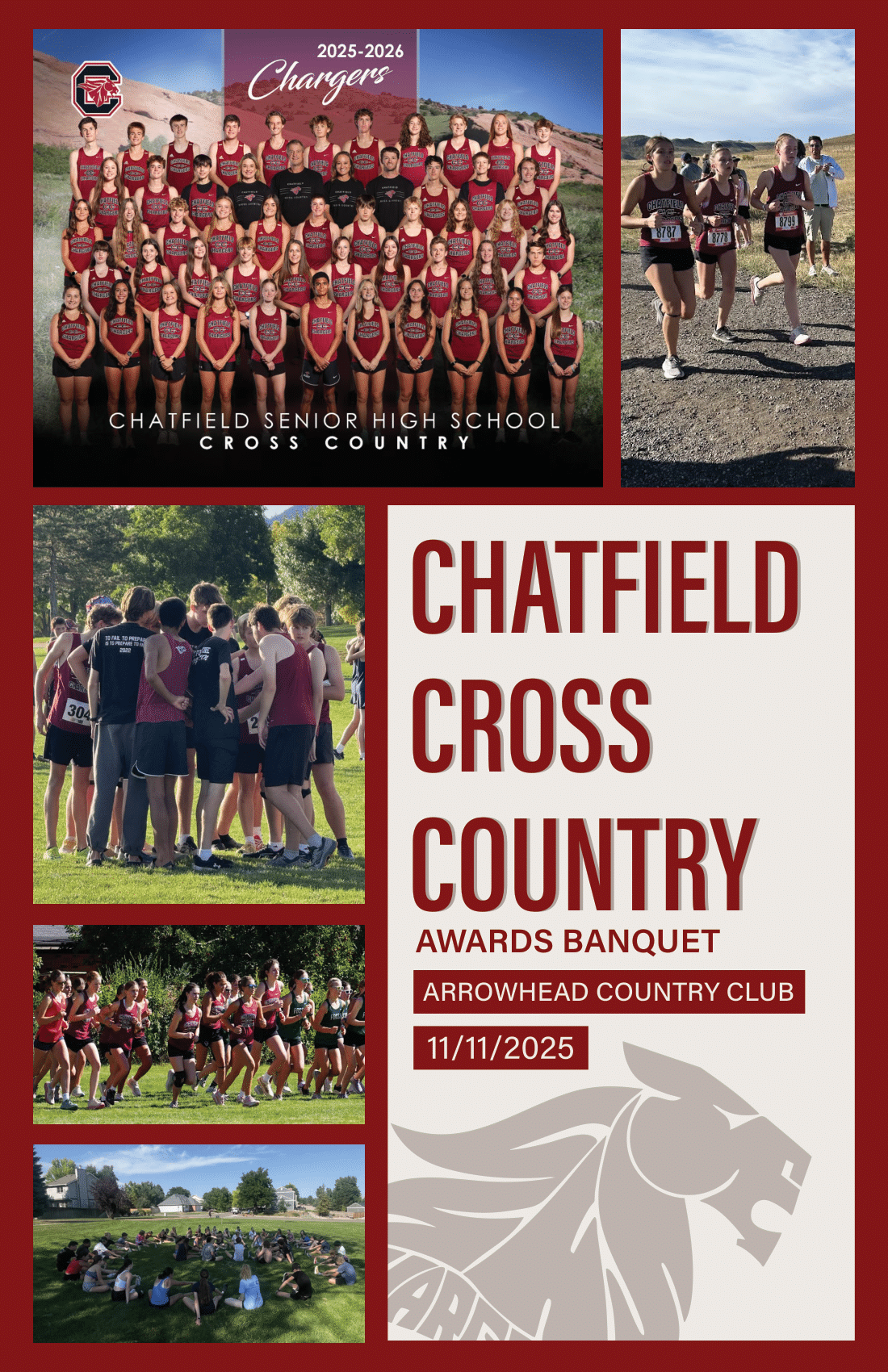 In high school, I participated in the Chatfield Cross Country team. My sister now runs for this team, so as a way of giving back to the program, I volunteered to create their brochure for their end-of-year banquet brochure. The booklet is meant to display the runners, their accomplishments, and the records set by the school.